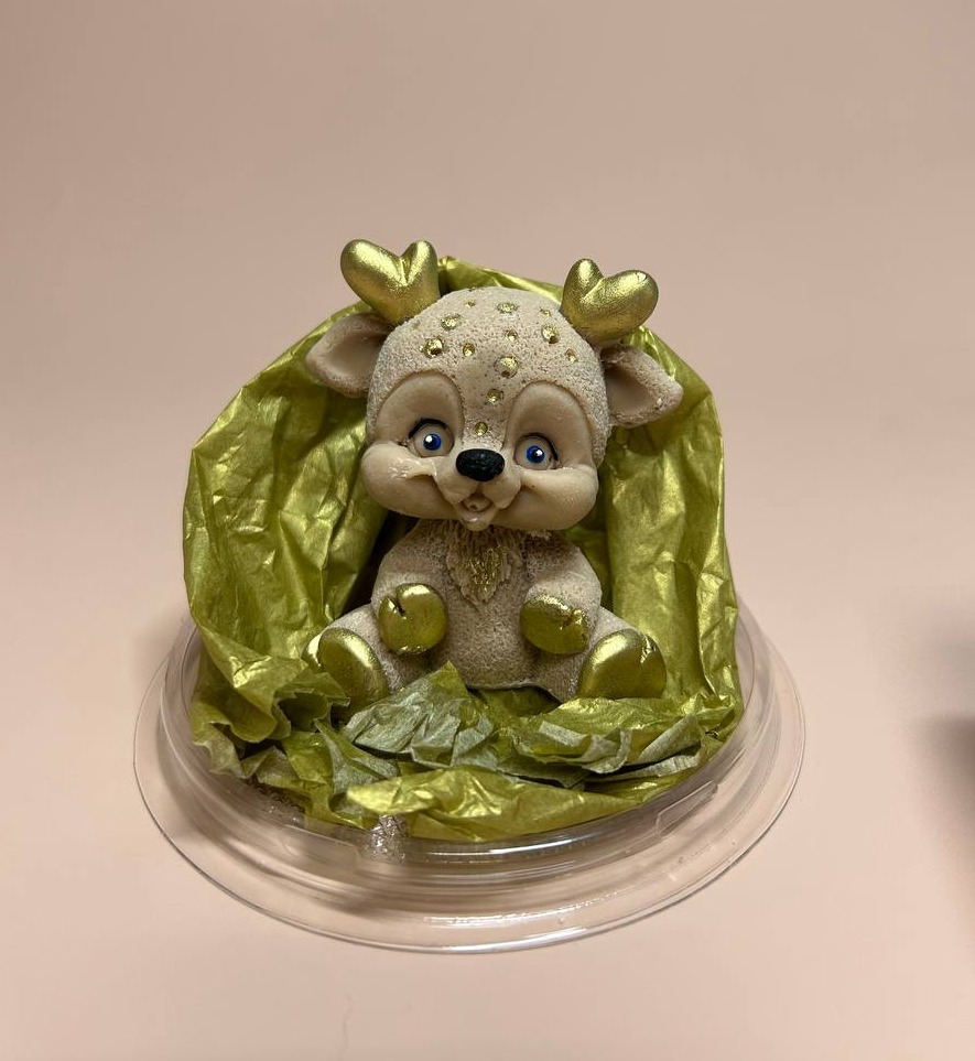Фигурка из шоко глазури «Олененок Дени новогодний» бежевый/золотой